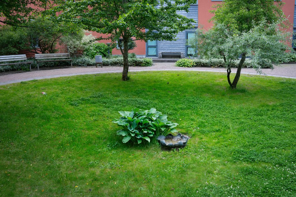 – Gårdarna är utformade så att det inte finns några stopp, utan cirklar så att man via alla gångstigar har en möjlighet att komma vidare. Man kan gå en oändlig promenad på en lite yta. Det här var också något som deltagarna på kursen föreslog för landskapsarkitekten som ritade gårdarna, säger Annika Engström.