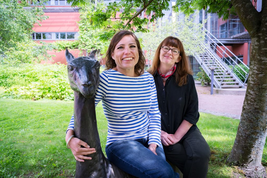 Linda Wallander och Annika Engström återser skulpturerna på Östra Sjukhuset. Foto: Paul Björkman.