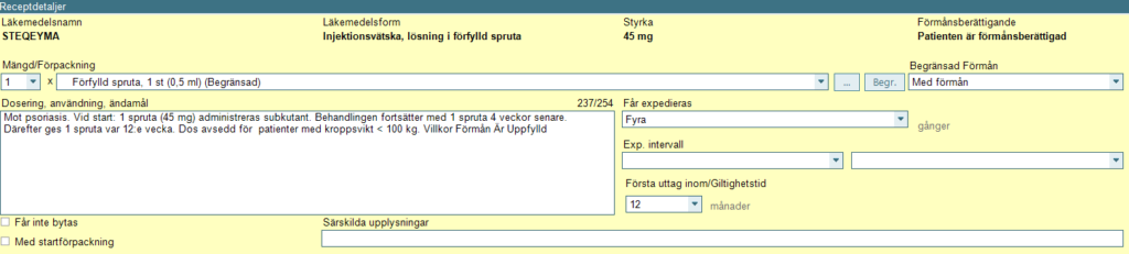 Förskrivningsanvisningen är i systemet begränsad till drygt 200 tecken, vilket i sig är ytterligare en svårighet, och skapandet av gemensamma och kliniköverspännande ordinationsmallar blev grunden för Sam Polesies förbättringsarbete.