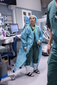 – Förutom alla fördelar för patienter finns fördelar för den som opererar också. För mig var det en ganska kort inlärningskurva från att operera traditionellt till vanlig titthålskirurgi och sedan robot. Det som kan vara en utmaning är att man inte får återkoppling rent motståndsmässigt, men man tittar mycket på hur vävnaden ser ut. För mig har den varit en väldigt stor förenkling. Bättre zoom, 3D-funktion, sy lättare, mer åtkomst… Jag kan hylla det här hur mycket som helst!
