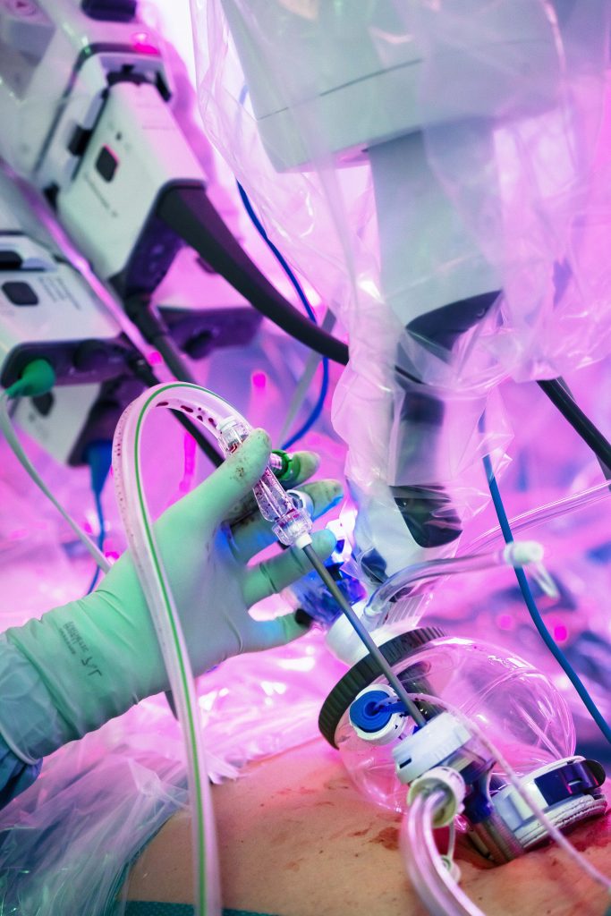 Fram till nu har patienten behövt öppnas på flera ställen i buken för att roboten ska kunna komma in. Varje öppning kallas ”port”.